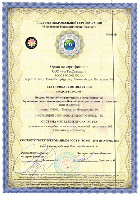 Общество с ограниченной ответственностью Научно-производственная фирма «Инженерно-строительные изыскания» настоящим свидетельствуют Вам свое уважение и предлагают Вам сотрудничество в области выполнения проектно-изыскательских работ.